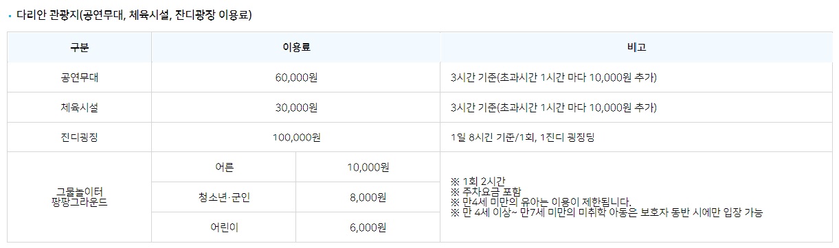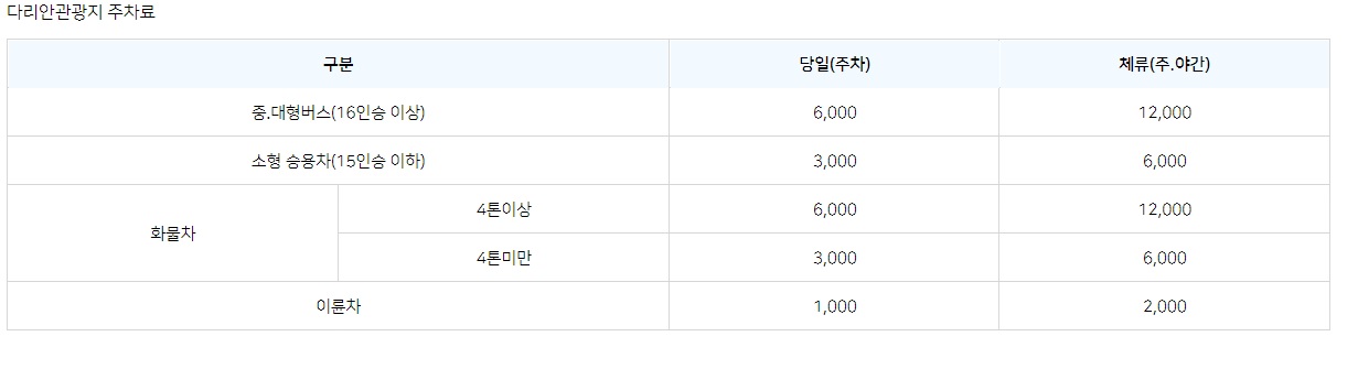 가장 중요한 이용료 및 주차료 입니다