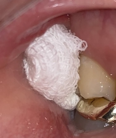 발치 후 출혈이 있기 때문에 거즈를 물려드릴 거예요, 물려드린 거즈는 최소 2시간은 잘 물고 계셔야 합니다.
