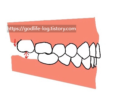 위 사진은 아랫치아를 발치 수 오랫동안 방치하여 맞물리는 치아가 없어서 윗 치아가 정출 된 상황입니다. 반대로 윗 치아가 없으면 아래치아가 위로 솟게 됩니다.